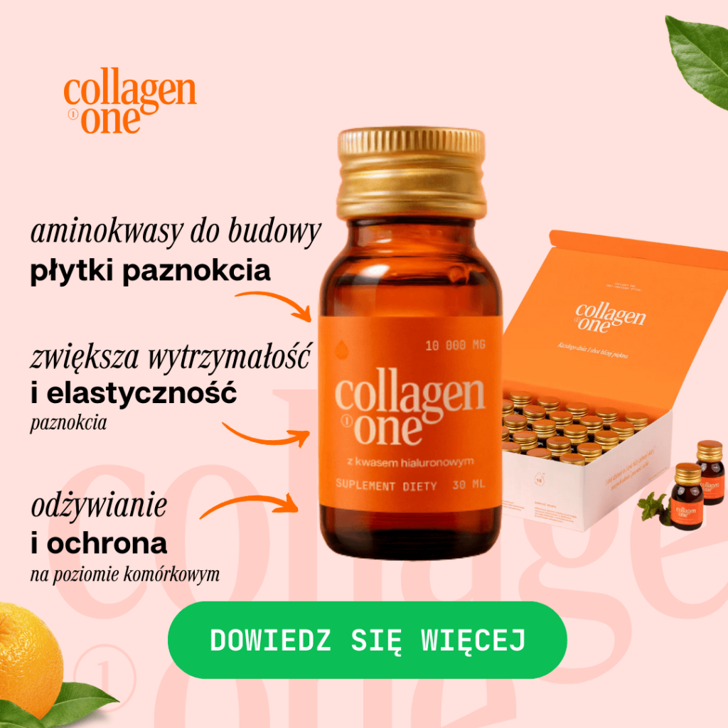 Dzięki tym mechanizmom suplement współdziała z dietą — gdy dostarczasz białka, minerały i witaminy przez jedzenie, Collagen One może uzupełniać brakujące ogniwa, by paznokcie były mocniejsze i zdrowsze.